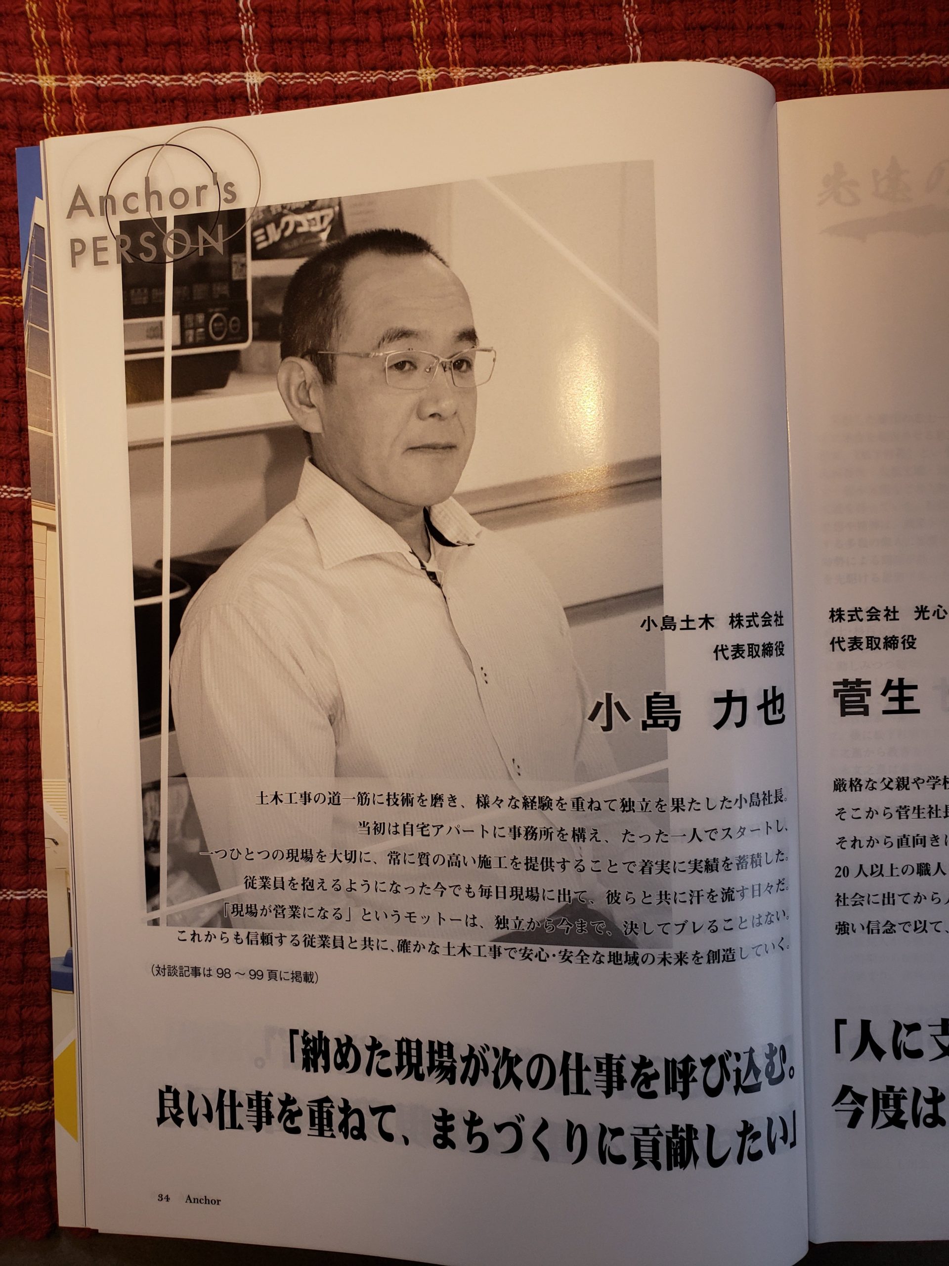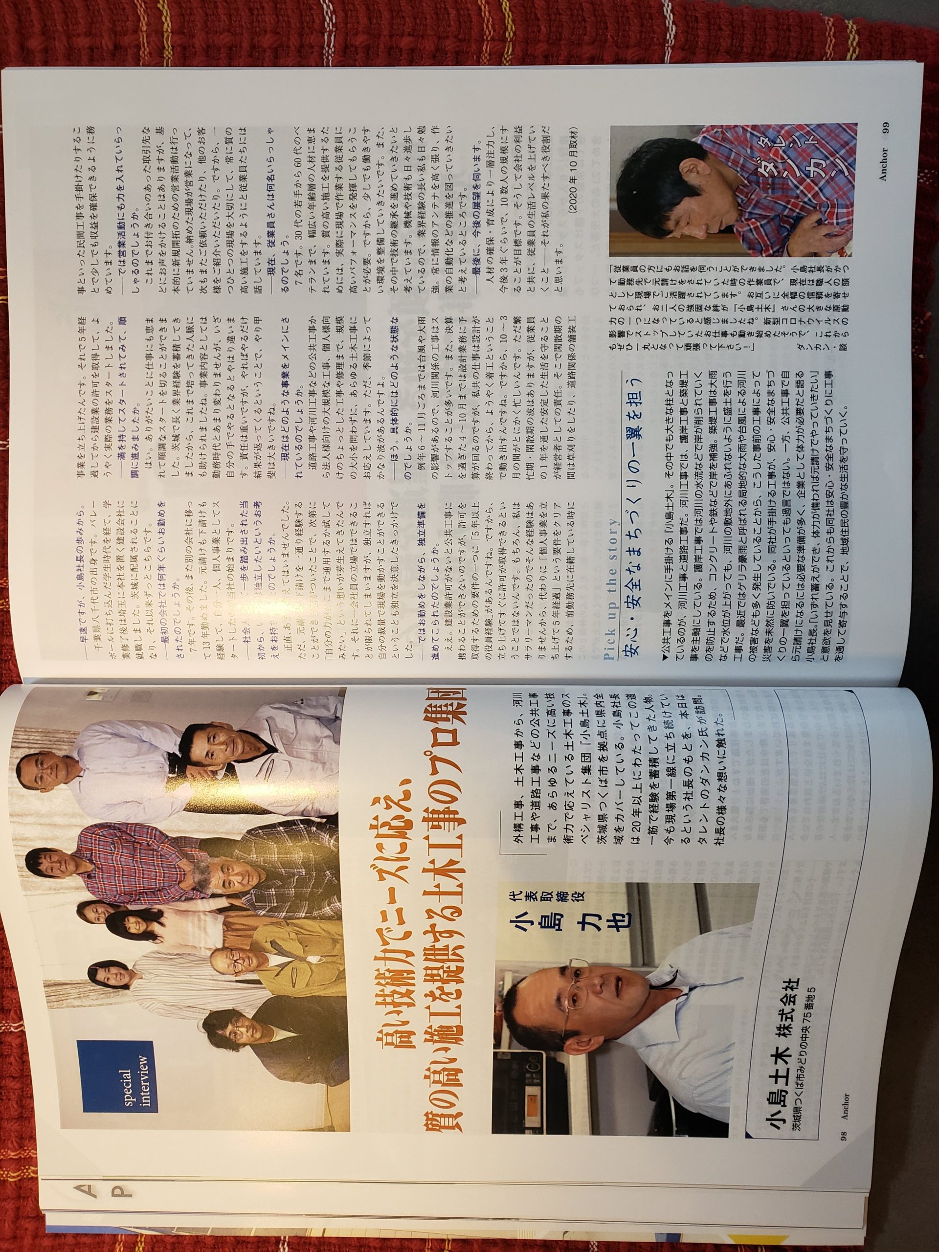 全国の様々な業種の方々が記載されており、大変興味深い記事も多々ありました。皆さん、苦労しながらも頑張っておられるようで、私共、小島土木においても、茨城県の建設会社として、恥ずかしくない仕事を引き続き行っていこうと思います。